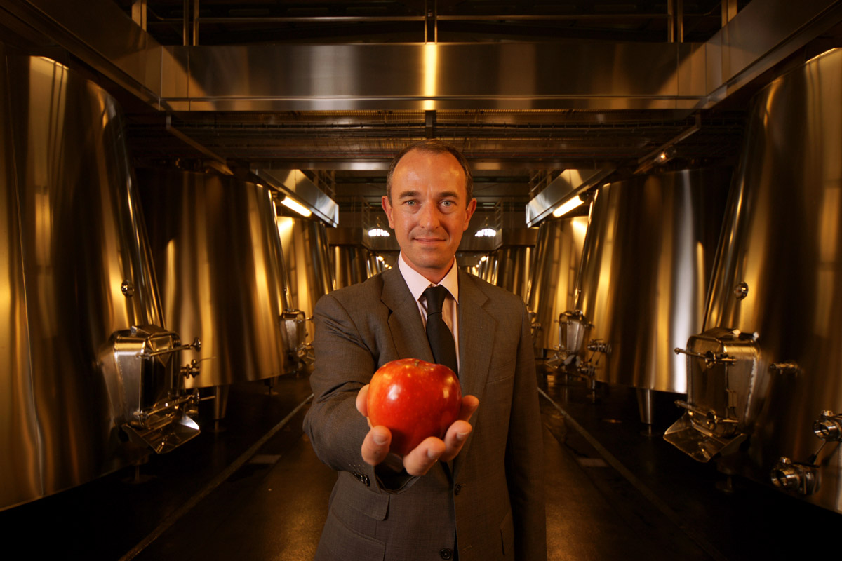 The wine at Cos D'Estournel is moved from grape to bottle purely by gravity, hence Jean Guillaume Prats is photographed with an apple.