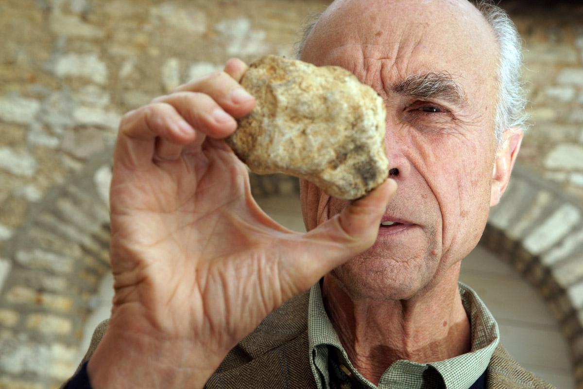 Aubert Villaine does not consider himself to be the superstar winemaker people profess him to be, but simply the man behind the terroir. So we see him here holding a piece of the terroir in front of himself, pulling our focus on to the land as he stands before the domaine.